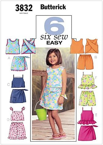 Amazon Com Butterick Pattern 3832 Six Sew Easy Girl S Top Skort And Shorts 2 3 4 5 Arts Crafts Sewing